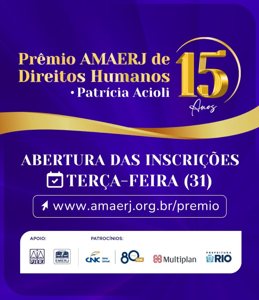 Leia também: Tribunais e associações divulgam o 15º Prêmio AMAERJ de Direitos Humanos – Patrícia Acioli