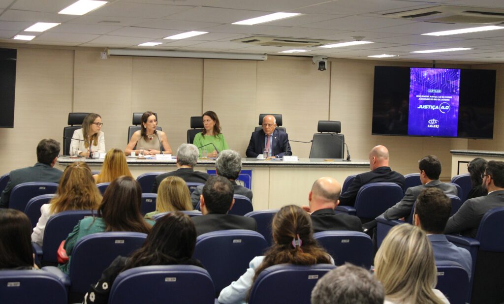 Também compuseram a mesa do evento os desembargadores Jacqueline Montenegro, presidente da COMAQ (Comissão de Políticas Institucionais para Eficiência Operacional e Qualidade dos Serviços Judiciais), e Cláudio dell’Orto, diretor-geral da EMERJ; e a juíza Adriana Laia, conselheira de Estudos e Pesquisas da AMAERJ e supervisora dos Núcleos de Justiça 4.0.