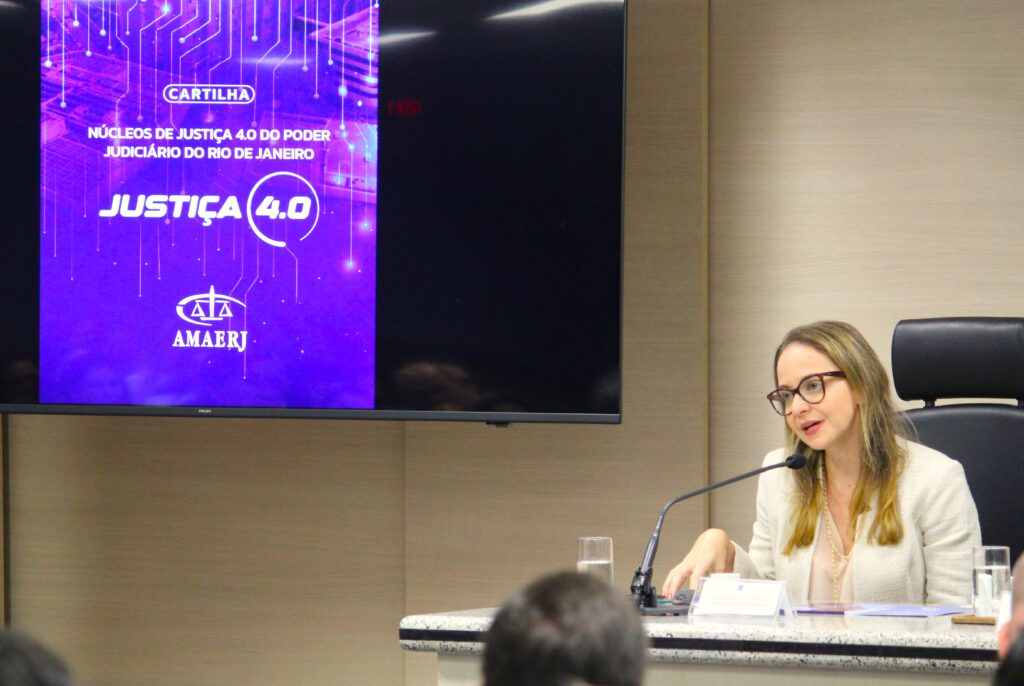 Produzida pela AMAERJ, a Cartilha Núcleos de Justiça 4.0 do Poder Judiciário do Rio de Janeiro foi lançada nesta segunda-feira (27), na Escola da Magistratura do Estado (EMERJ). O evento reuniu a presidente da Associação, juíza Eunice Haddad, e 50 juízes do TJ-RJ.