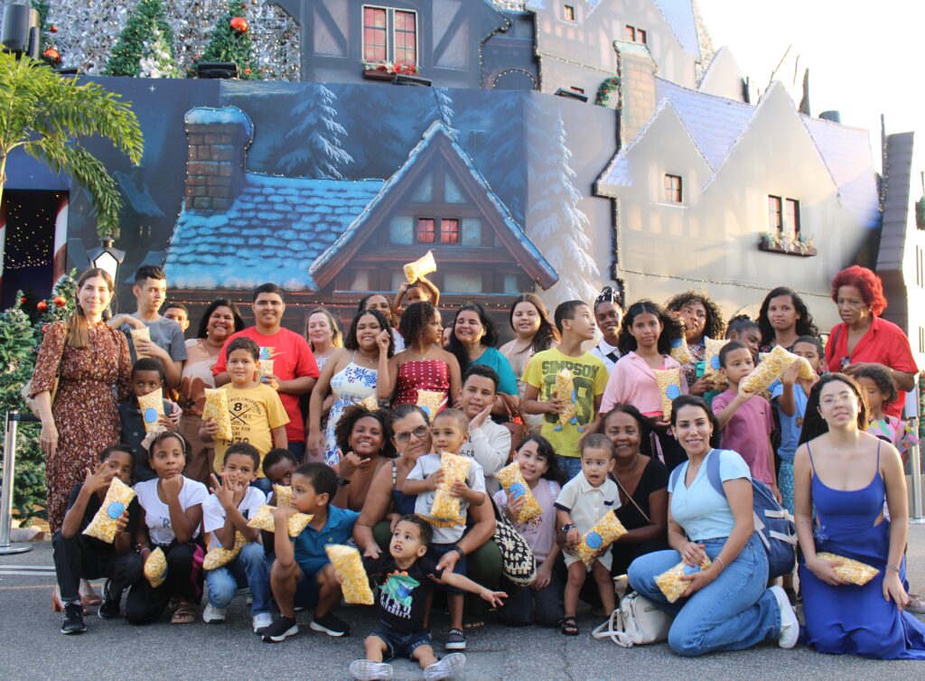 Durante o passeio, as crianças receberam lanche, tiraram fotos na Casa do Papai Noel, visitaram as atrações no interior da Árvore de Natal e ganharam pipoca.