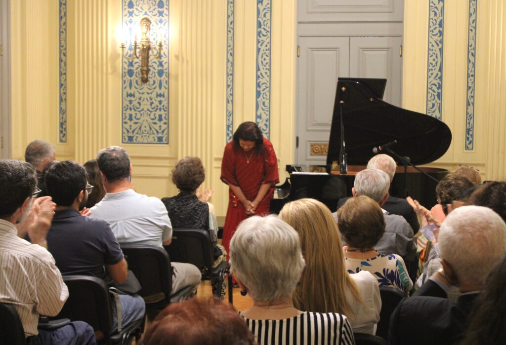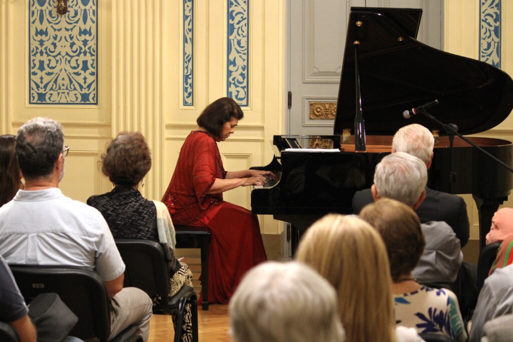 Magistrados do Tribunal de Justiça do Rio de Janeiro (TJ-RJ) compareceram, nesta segunda-feira (27), ao recital “Um piano ao cair da tarde”, apresentado pela pianista Carol Murta Ribeiro. A juíza Ana Beatriz Estrella, 2ª vice-presidente da AMAERJ, representou a Associação no evento, promovido pelo programa Justiça em Concerto, do Centro Cultural do Poder Judiciário do Rio de Janeiro (CCPJ-RJ).