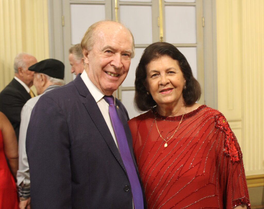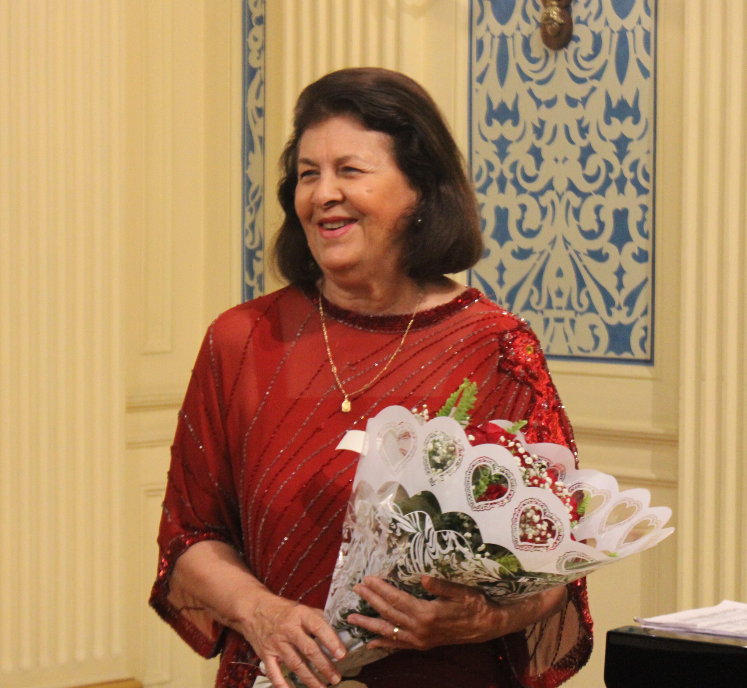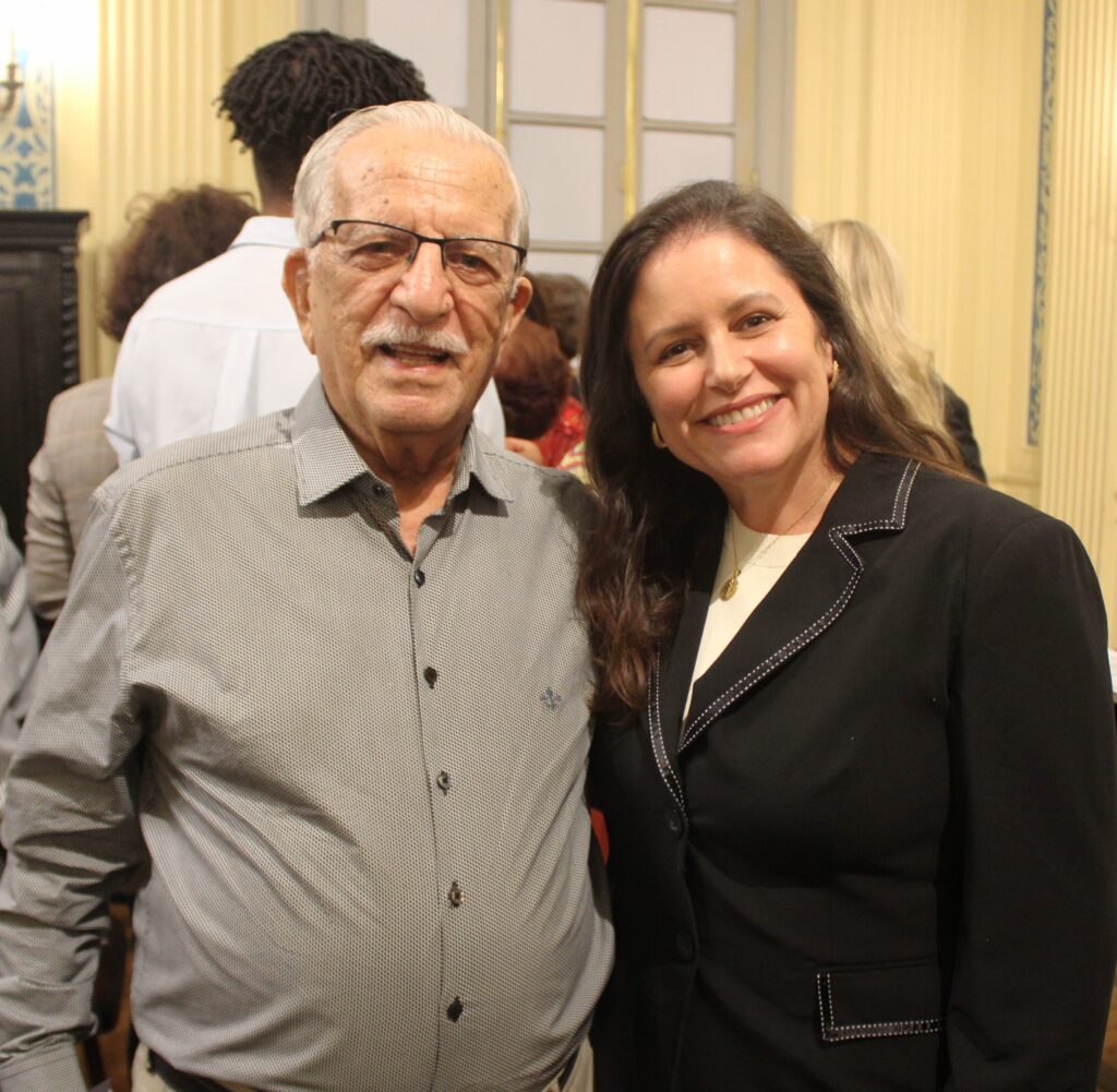Juiz aposentado Joel Pereira com a musicista, que ganhou flores ao final do recital