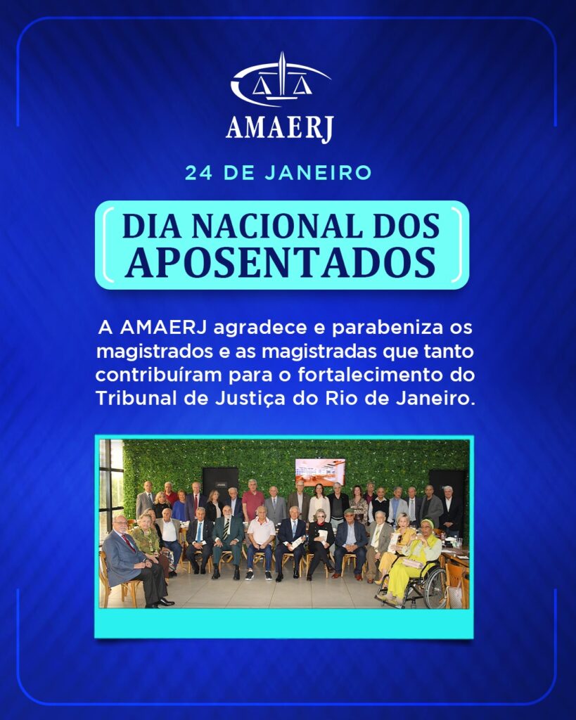 É celebrado neste sábado (24) o Dia Nacional dos Aposentados. A AMAERJ homenageia os magistrados e as magistradas que tanto se dedicaram ao Tribunal de Justiça do Rio de Janeiro.