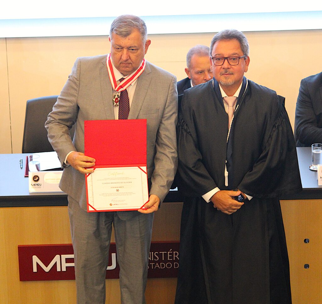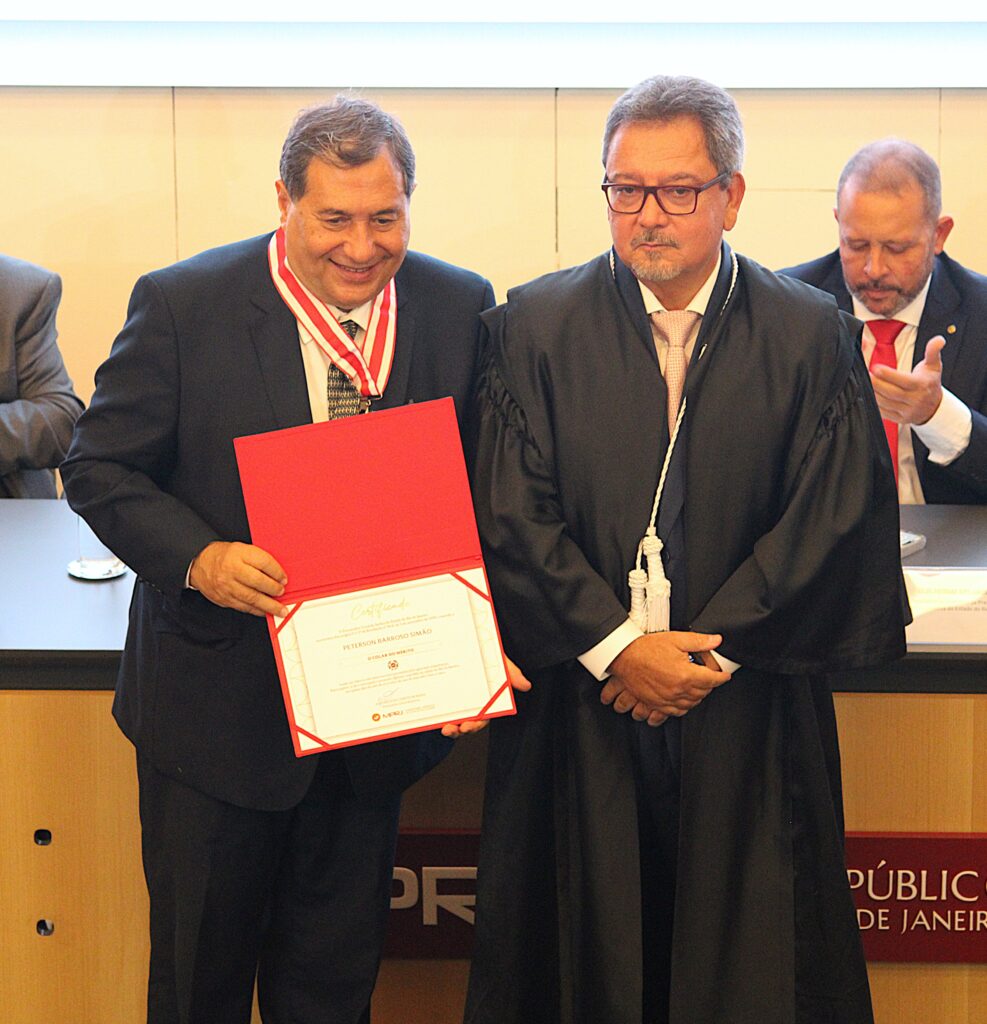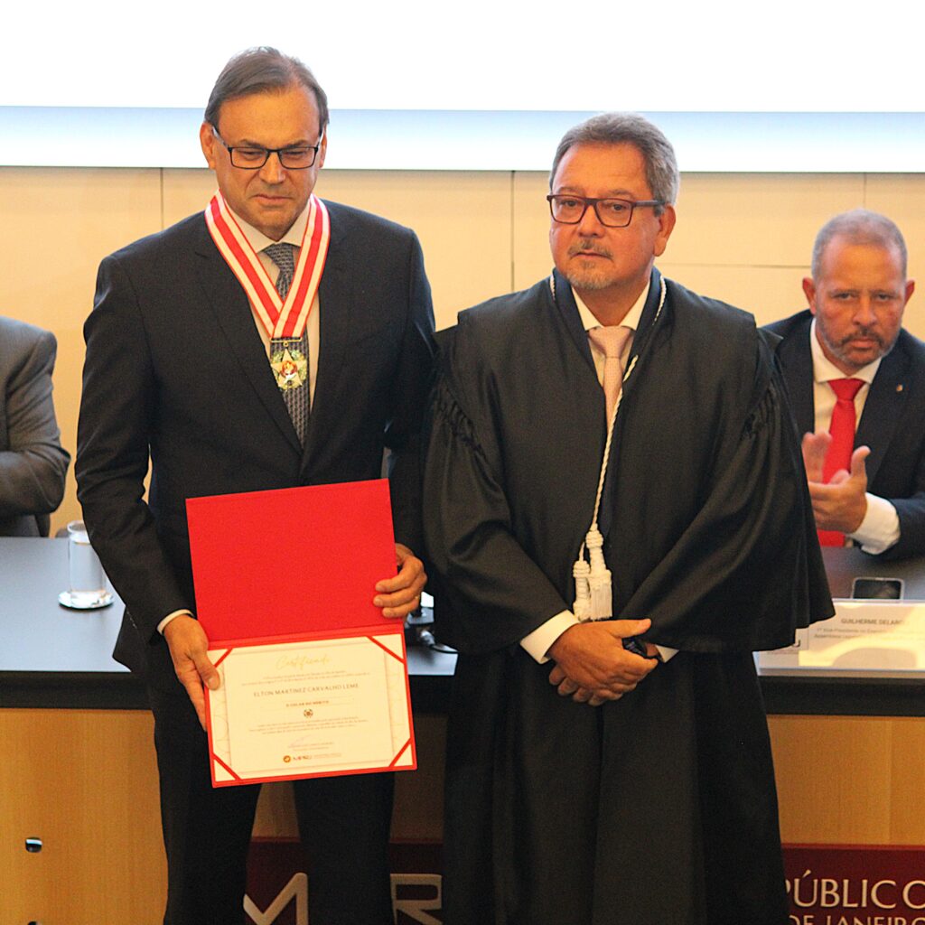 O Ministério Público do Rio de Janeiro concedeu o Colar do Mérito, nesta segunda-feira (15), em celebração ao Dia Nacional do MP. Foram homenageados os desembargadores Claudio Brandão, corregedor-geral da Justiça, Peterson Barroso Simão, presidente do Tribunal Regional Eleitoral (TRE-RJ), e Elton Leme, diretor-geral do Centro de Estudos e Debates (CEDES), do Tribunal de Justiça do Rio de Janeiro (TJ-RJ).