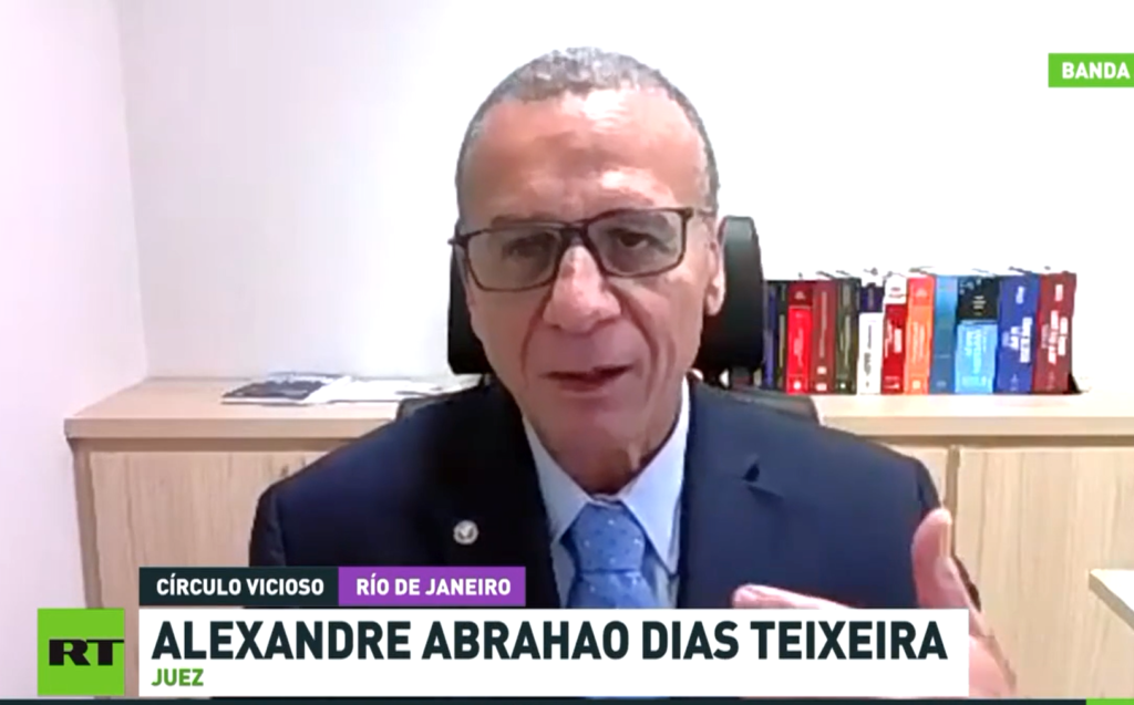 O juiz Alexandre Abrahão, diretor da AMAERJ de Segurança do Magistrado, concedeu entrevista ao canal internacional RT. A reportagem tratou dos armamentos de guerra que são desviados até chegar a grupos criminosos em diversos países. O magistrado falou sobre o avanço de drones estrangeiros com explosivos usados por narcotraficantes no Rio de Janeiro.