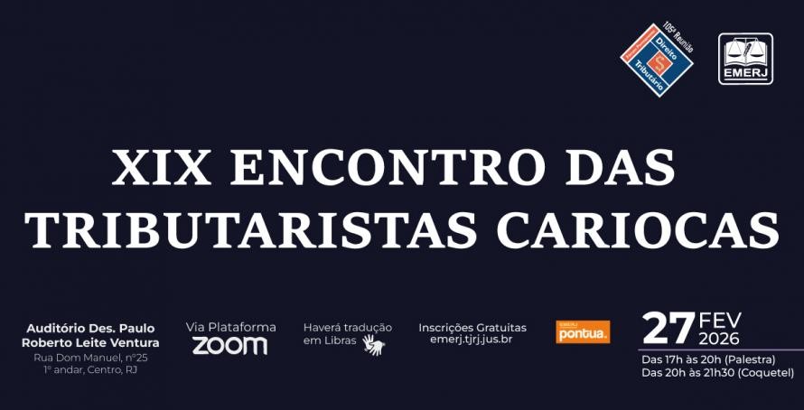 A Escola da Magistratura do Rio de Janeiro (EMERJ) vai promover, no dia 27 de fevereiro, o 19º Encontro das Tributaristas Cariocas. Integram a programação do evento os magistrados do Tribunal de Justiça (TJ-RJ) Flávia Romano de Rezende, Wagner Cinelli, Leticia D’Aiuto e Cristiana Aparecida Bonato.