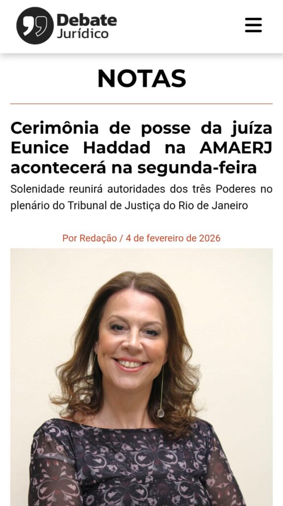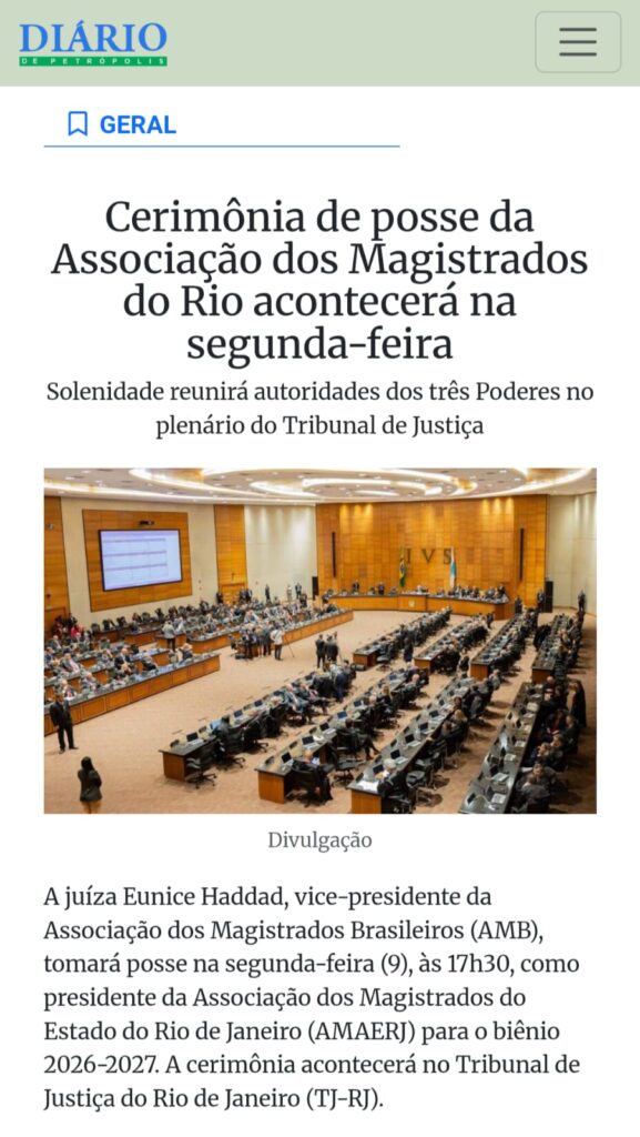 A posse dos dirigentes da AMAERJ para o biênio 2026-2027 foi tema de reportagens na imprensa. O site “Consultor Jurídico” (ConJur) destacou que cerimônia reunirá autoridades dos três Poderes na próxima segunda-feira (9), no Tribunal de Justiça do Rio de Janeiro (TJ-RJ).