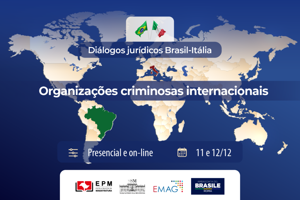 O evento é promovido em parceria com a Escola de Magistrados da Justiça Federal da 3ª Região e a Escola Superior da Magistratura italiana (SSM), com o apoio da Escola Nacional de Formação e Aperfeiçoamento de Magistrados (ENFAM), da Embaixada do Brasil na Itália e da Embaixada da Itália no Brasil.