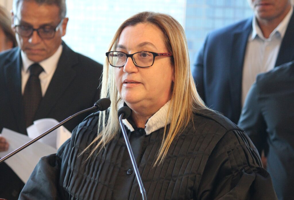 A juíza Cláudia Vidal prestou o compromisso de posse e discursou em nome dos empossados.