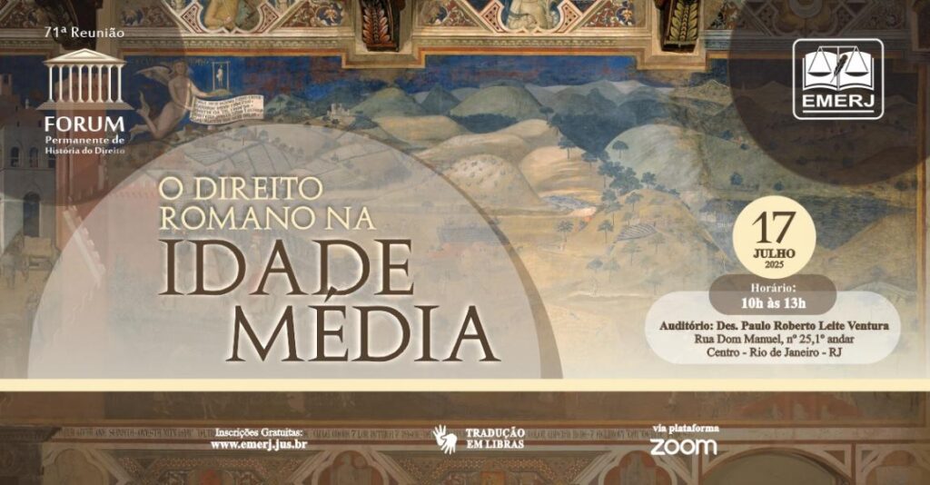 A Escola da Magistratura do Estado do Rio de Janeiro (EMERJ) realizará, no próximo dia 17, o seminário “O Direito Romano na Idade Média”. A abertura do seminário será conduzida pelo desembargador Cláudio Dell’Orto, diretor-geral da EMERJ, e pelo juiz João Marcos Fantinato, vice-presidente do Fórum Permanente de História do Direito da Escola.