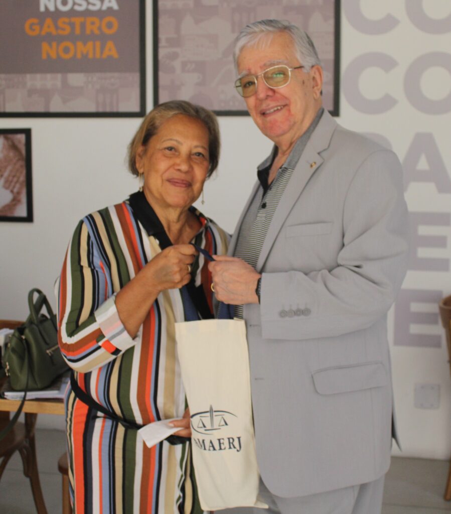 Aniversariantes do mês de novembro e dezembro, a desembargadora Zélia Maria Machado e o juiz William Felisberto Fagundes também foram presentados pela AMAERJ com garrafas de vinho.