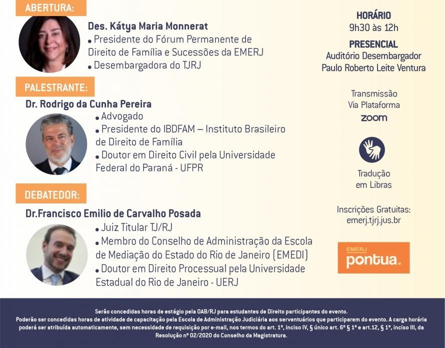 O palestrante será o advogado Rodrigo da Cunha Pereira, presidente do Instituto Brasileiro de Direito de Família (IBDFAM).