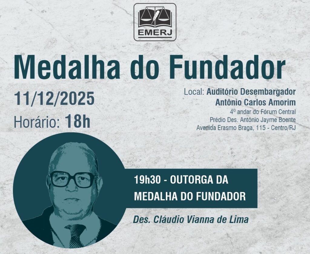 A Escola da Magistratura do Estado do Rio de Janeiro (EMERJ) homenageará 25 desembargadores na próxima quinta-feira (11). Magistrados ativos e aposentados serão laureados com a Medalha do Fundador, no Auditório Desembargador Antônio Carlos Amorim, no 4º andar do Fórum Central do Tribunal de Justiça (TJ-RJ).