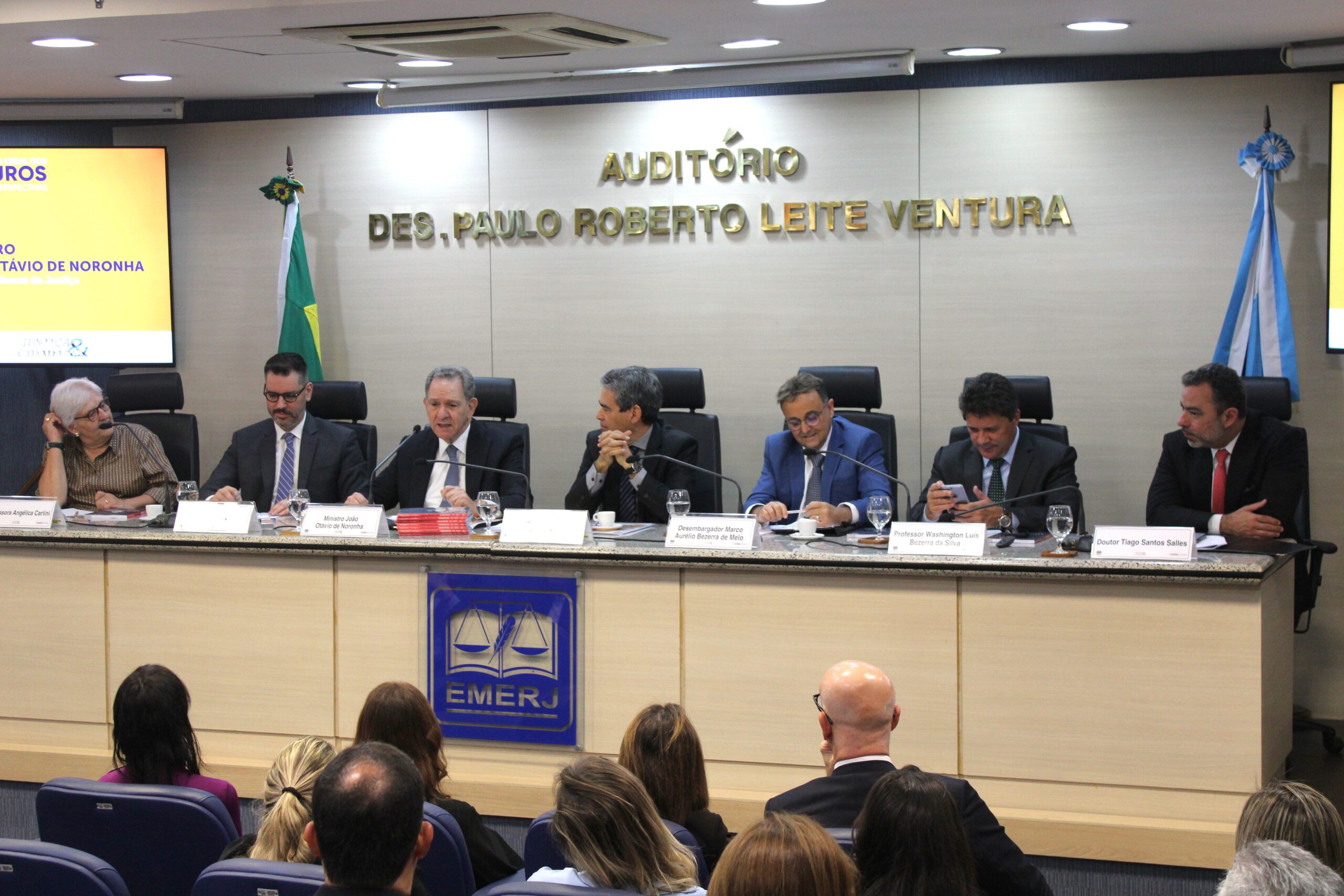 O ministro João Otávio de Noronha, do Superior Tribunal de Justiça (STJ), participou de seminário na Escola da Magistratura do Estado do Rio de Janeiro (EMERJ), nesta segunda-feira (8), sobre o Novo Marco Legal dos Seguros. A juíza Eunice Haddad, presidente da AMAERJ, esteve no encontro, que contou com a participação de desembargadores do Tribunal de Justiça do Rio de Janeiro (TJ-RJ).