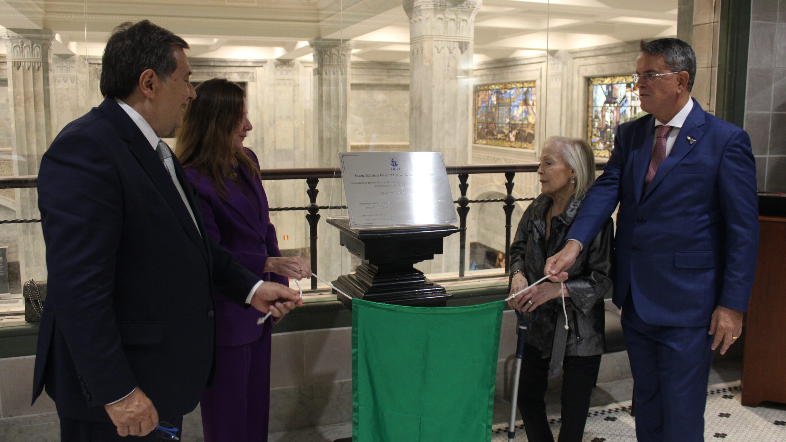 A placa foi descerrada pelos desembargadores Peterson Barroso Simão, Maria Helena Machado e Claudio Mello Tavares, e a esposa de Roberto Felinto, Marcia Imbuzeiro.