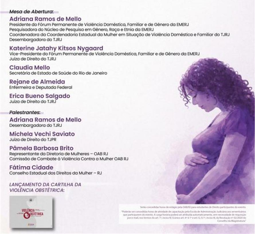 O evento “A Violência Obstétrica: Uma Grave Violação aos Direitos Reprodutivos das Mulheres – Em Alusão ao Dia 8 de Março: Mês da Mulher” será organizado pelo Fórum Permanente de Violência Doméstica, Familiar e de Gênero e o Núcleo de Pesquisa de Gênero, Raça e Etnia (NUPEGRE), ambos da EMERJ, em parceria com a Coordenadoria Estadual da Mulher em Situação de Violência Doméstica e Familiar (COEM).